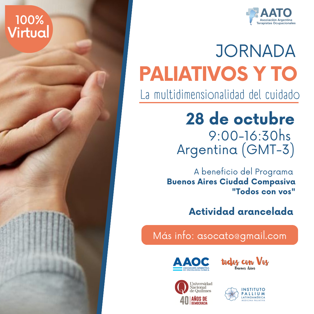 La Asociación Argentina de Oncología Clínica, la Asociación Argentina de Terapistas Ocupacionales e Instituto Pallium invitan a la Jornada Paliativos y T.O – La Multidimensionalidad del cuidado.